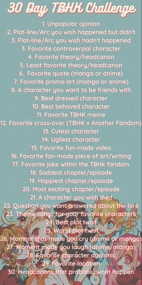. 30 Day Drawing Challenge. 30 day anime challenge. See more ideas about my hero academia manga my hero academia episodes hero academia characters.